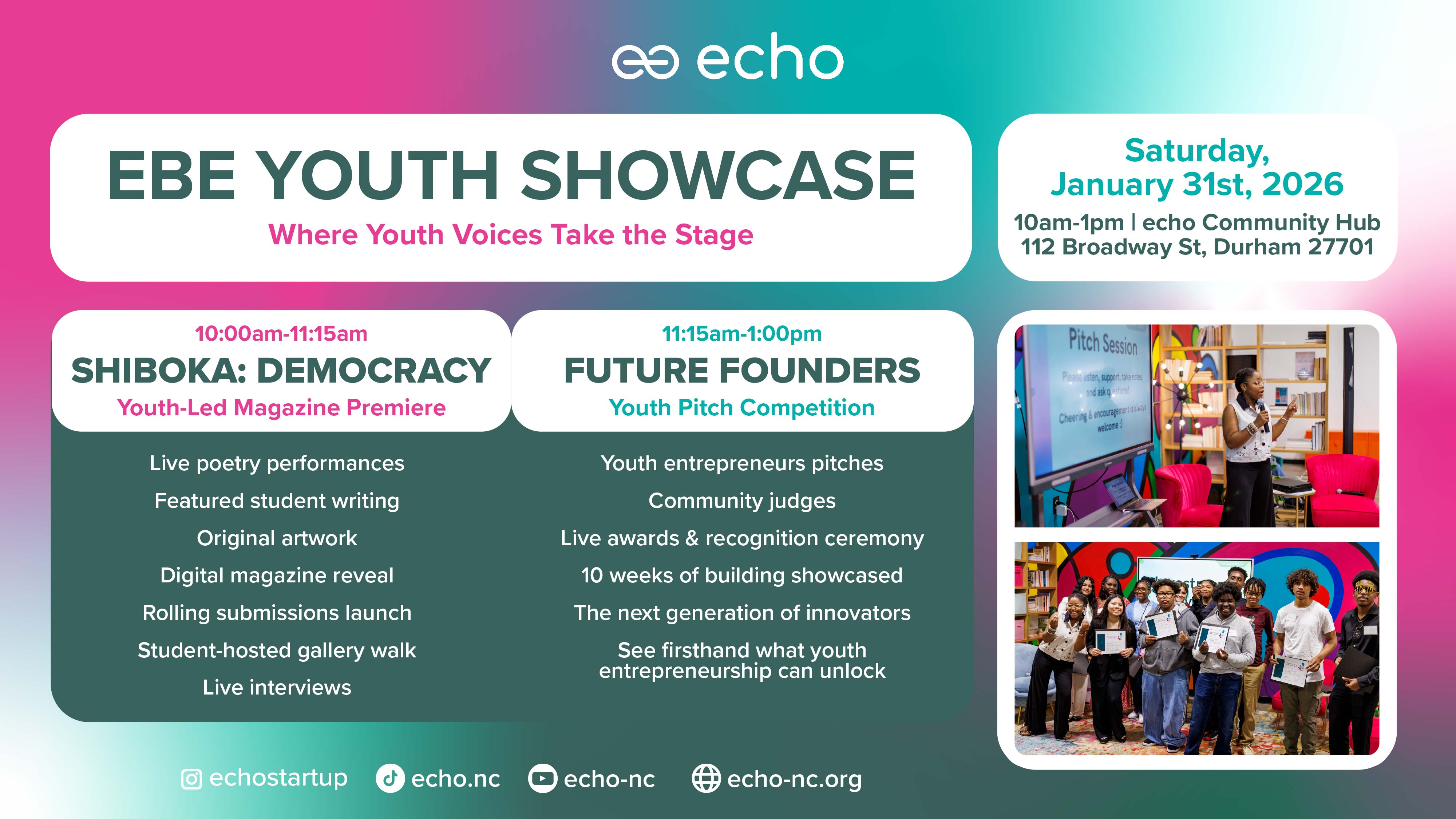 Fill out the form and will send you updates on echo events, programs, and community spotlights!