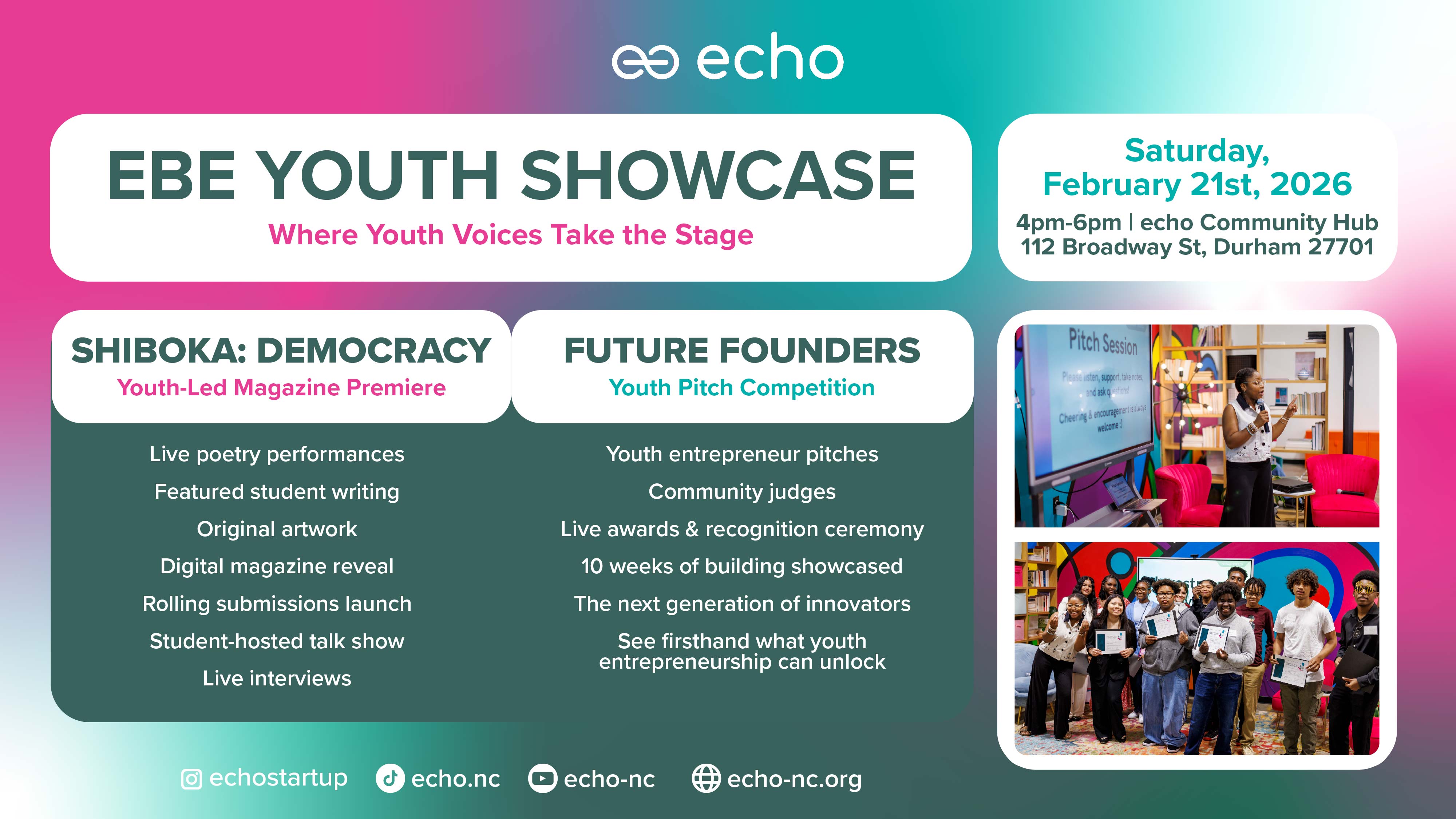 Fill out the form and will send you updates on echo events, programs, and community spotlights!